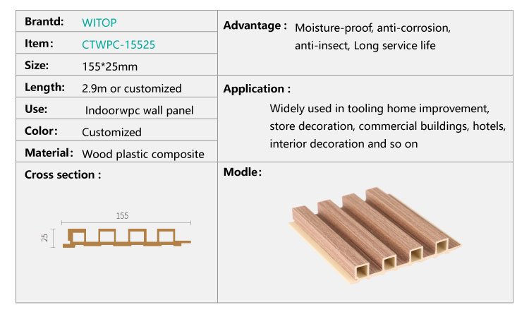 WPC wall panels are manufactured from a unique combination of wood and plastic, are resistant to rotting, and have a vibrant long-lasting color.